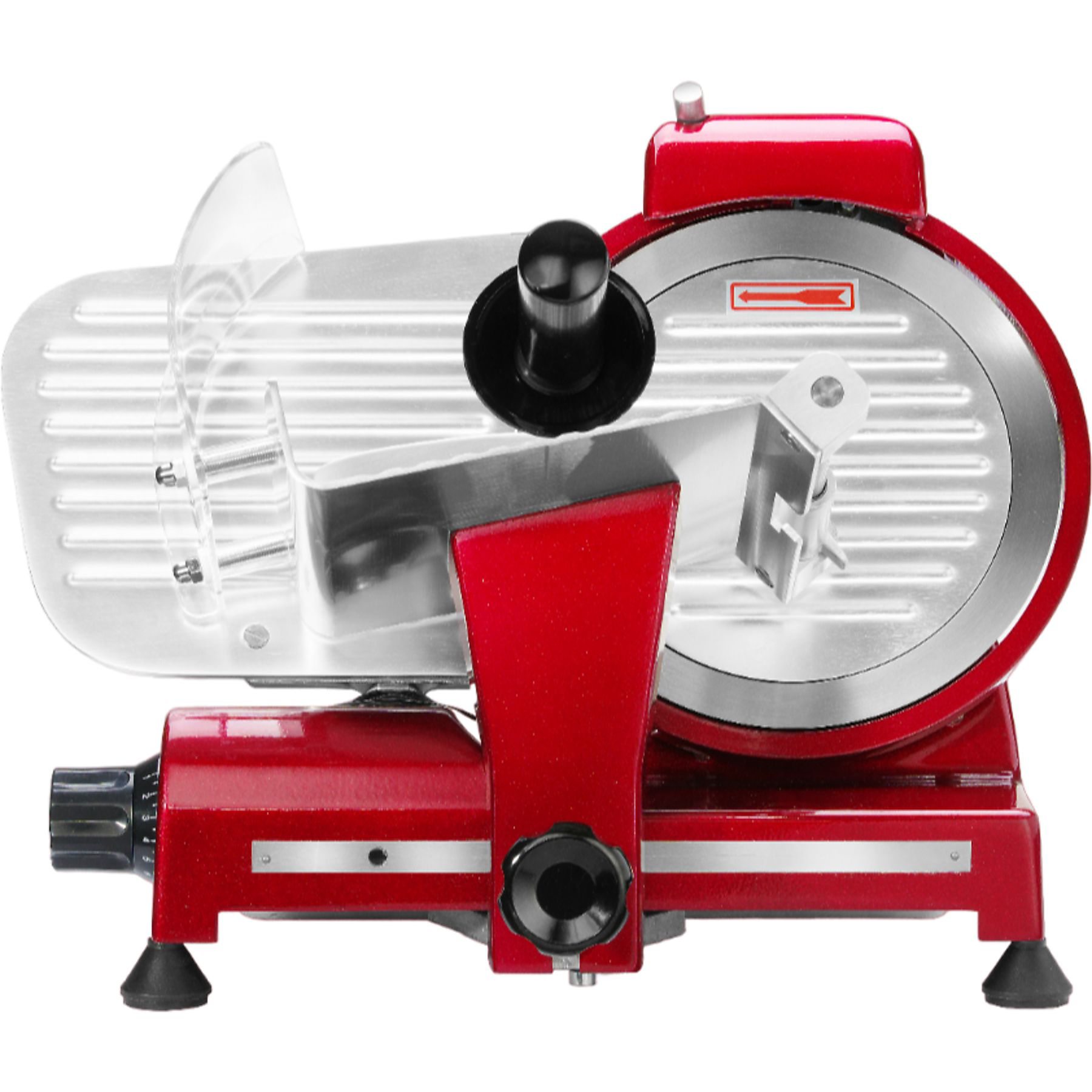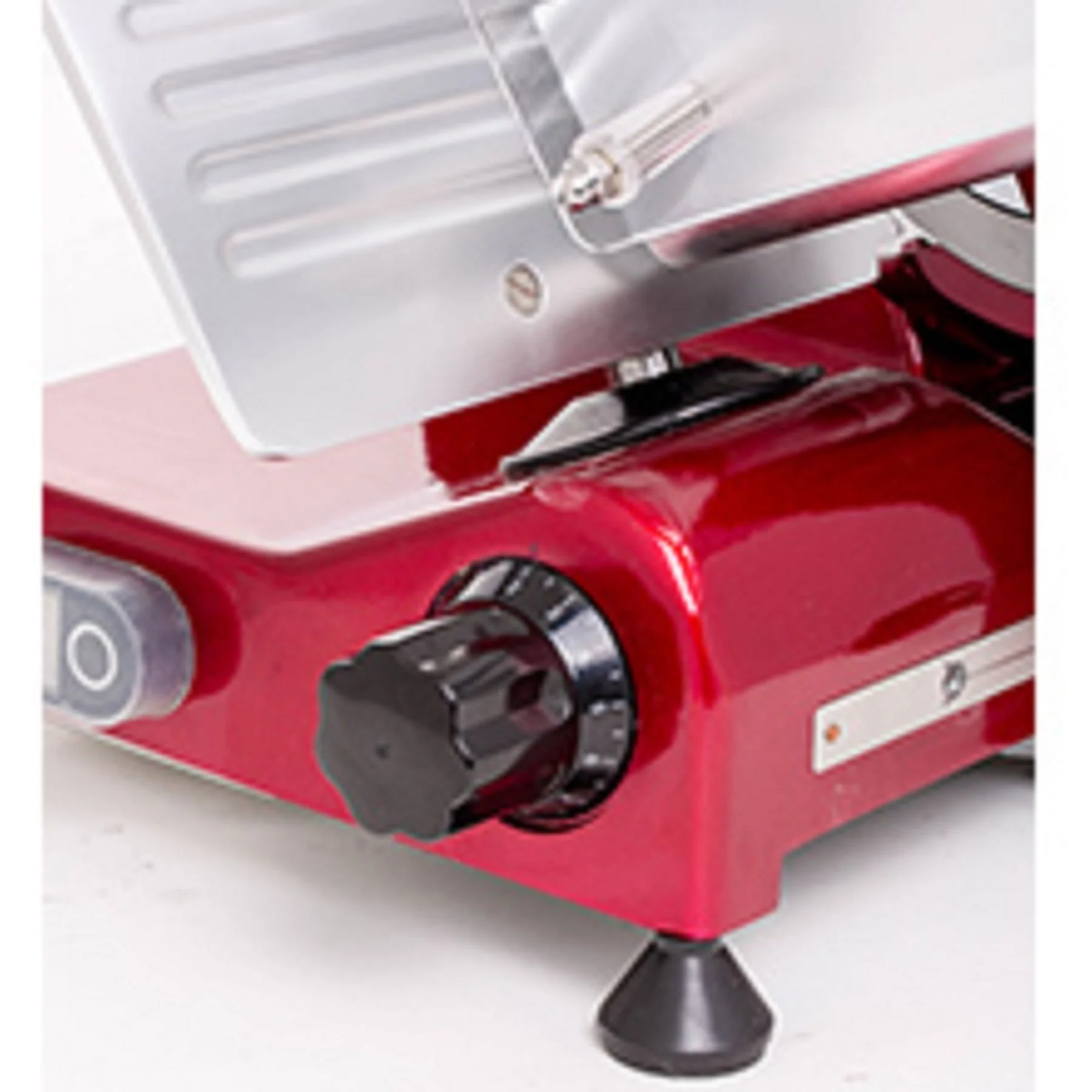 Lieferumfang | Klingen-Durchmesser: 220 mm. Stufenlos einstellbare Schnittdicke bis zu 15 mm. Maximaler Schnittdurchmesser: 150 mm. In einer speziellen roten, glänzenden Beschichtung gefertigt. |