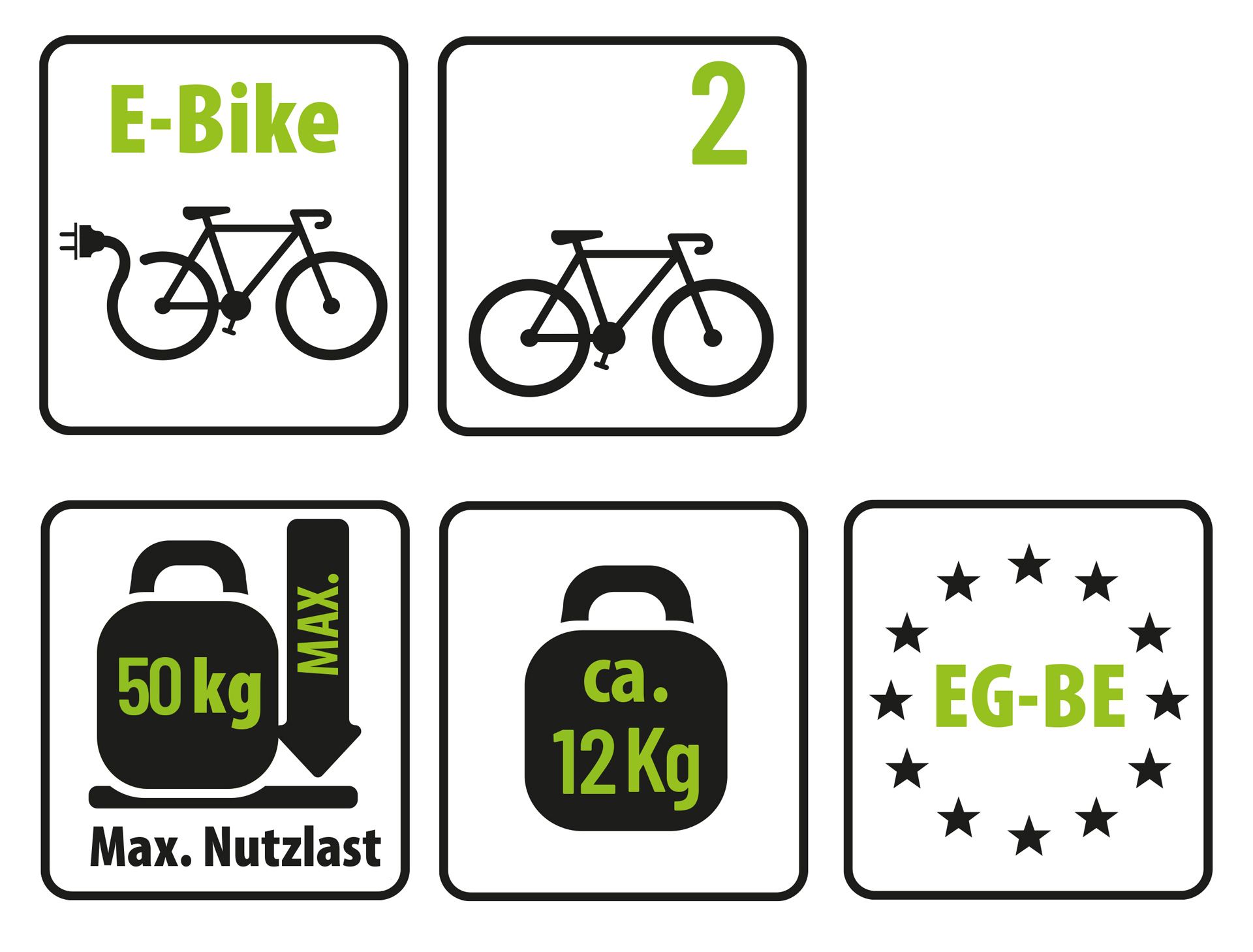 | Befestigung der Fahrräder am U-Bügel: | abnehmbare Textilspanngurte Rahmenhalter |