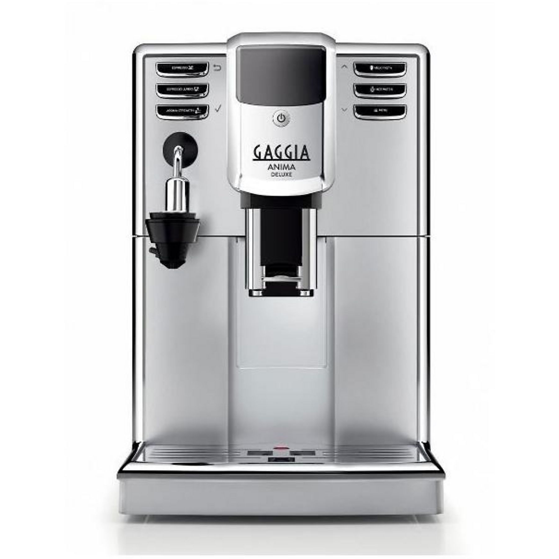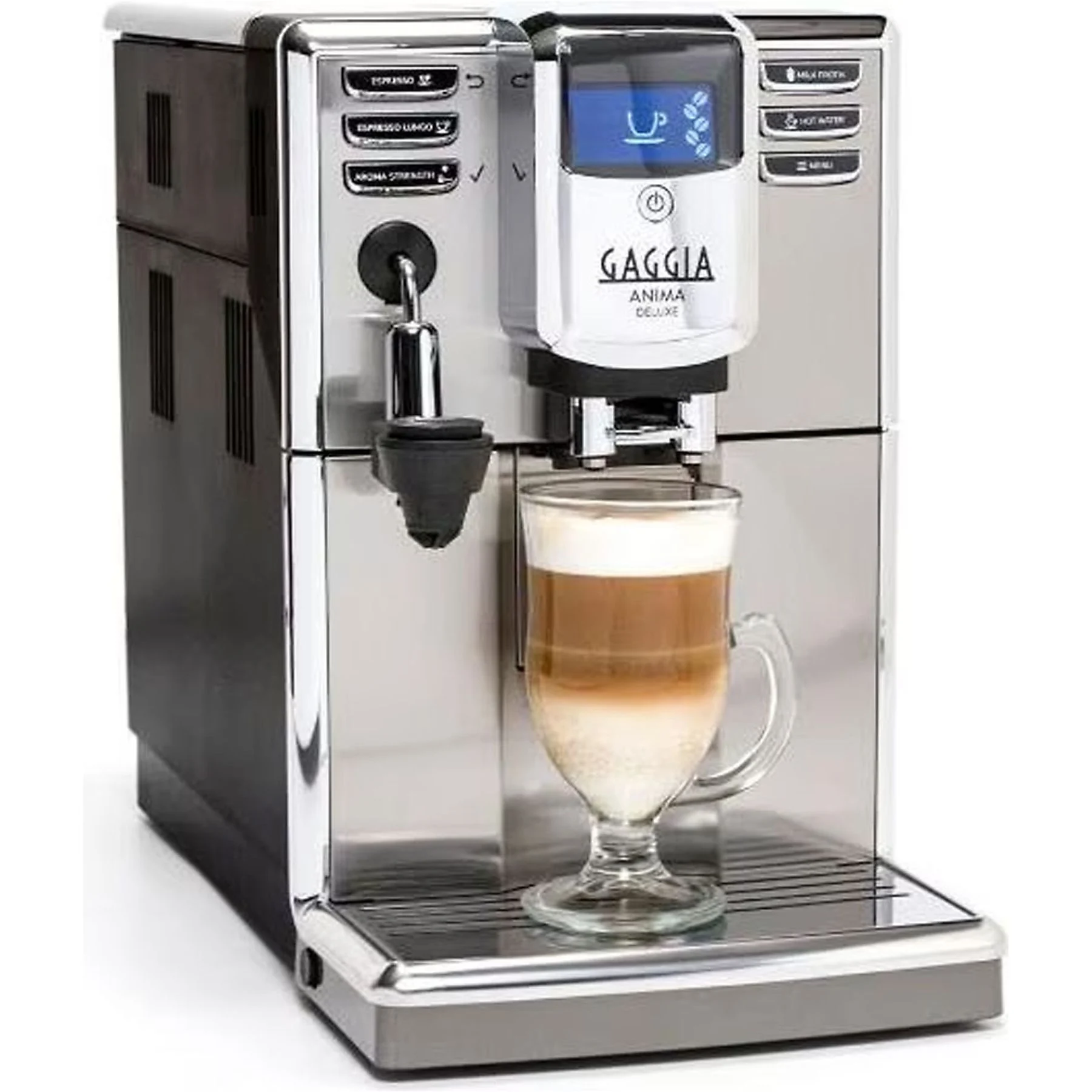 Die Gaggia Anima Deluxe RI8761/01 verbindet italienisches Design mit durchdachter Funktionalität und hochwertigen Materialien. Die Front aus gebürstetem Edelstahl mit verchromten Seitenkanten sorgt für eine elegante Optik und unterstreicht die Langlebigkeit dieses kompakten Kaffeevollautomaten.