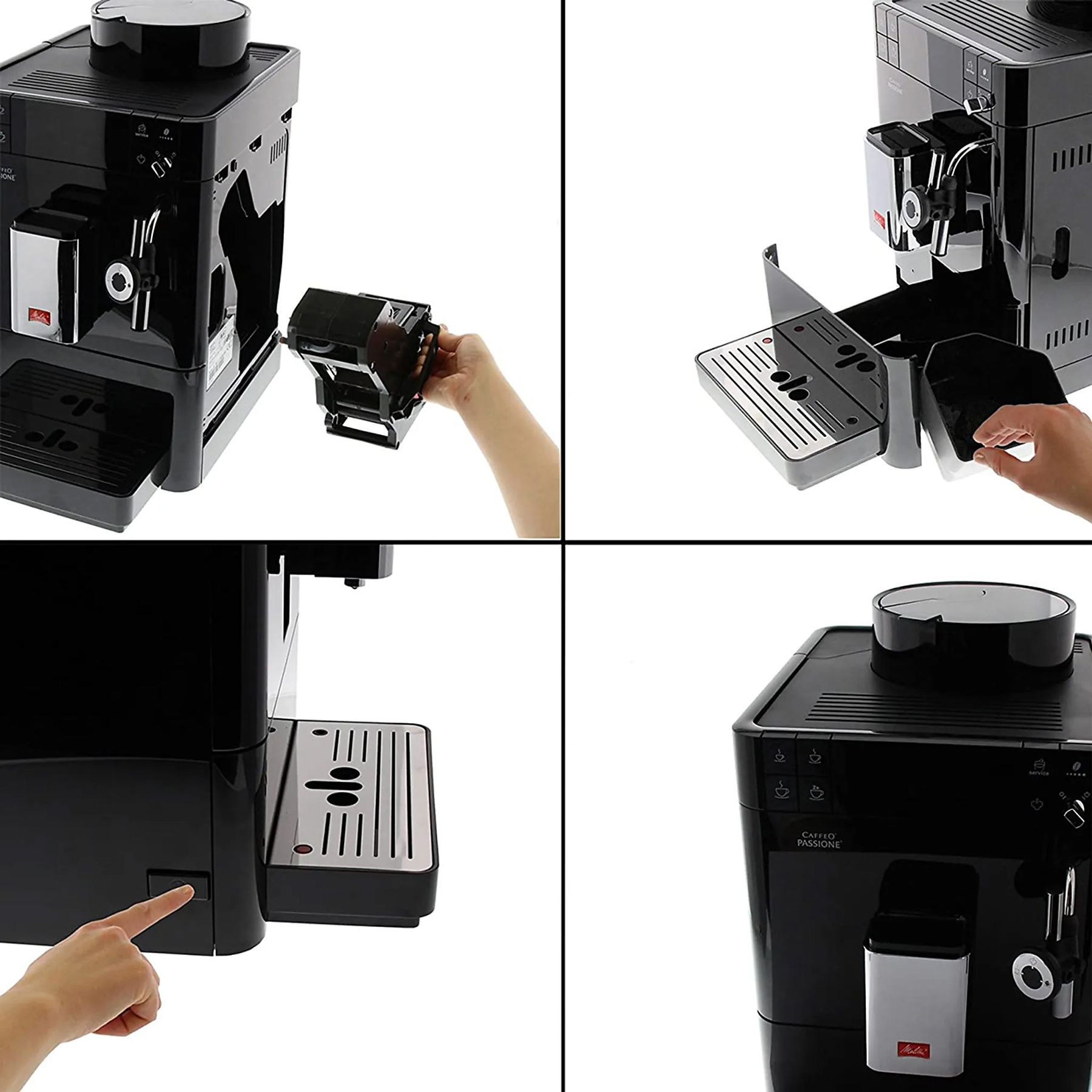 - Die Brühgruppe ist für eine besonders gründliche Reinigung entnehmbar