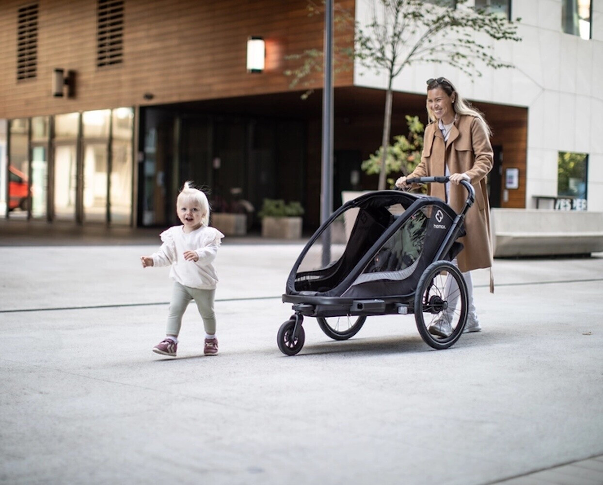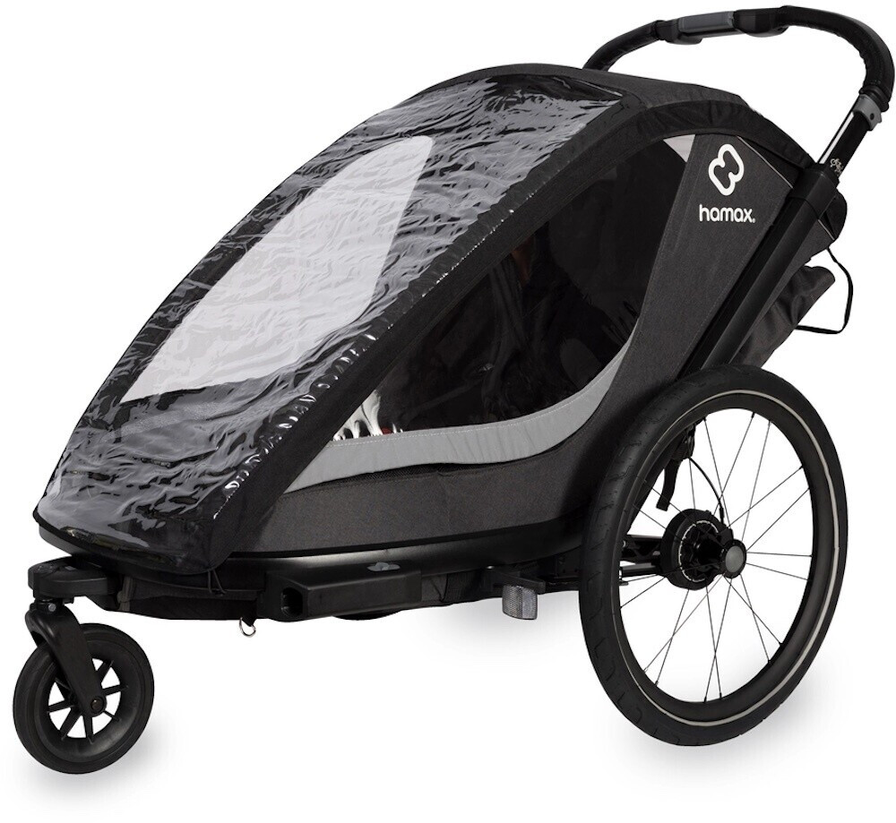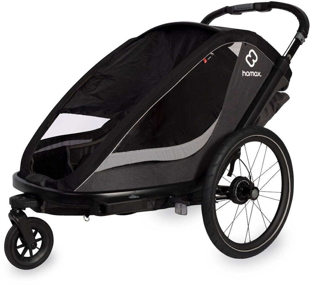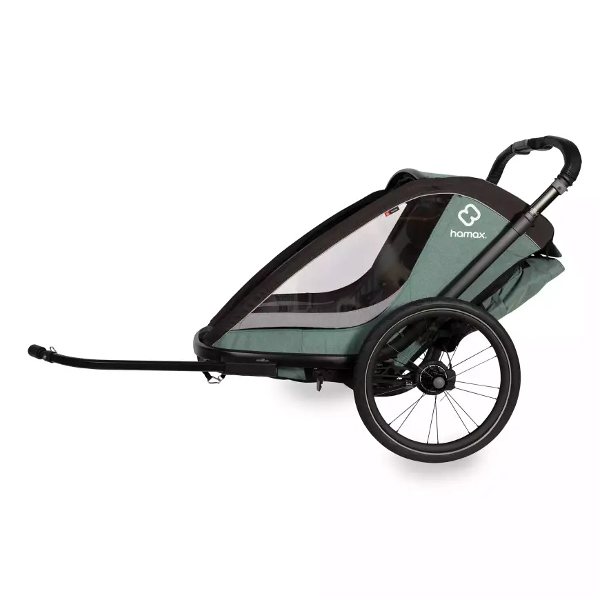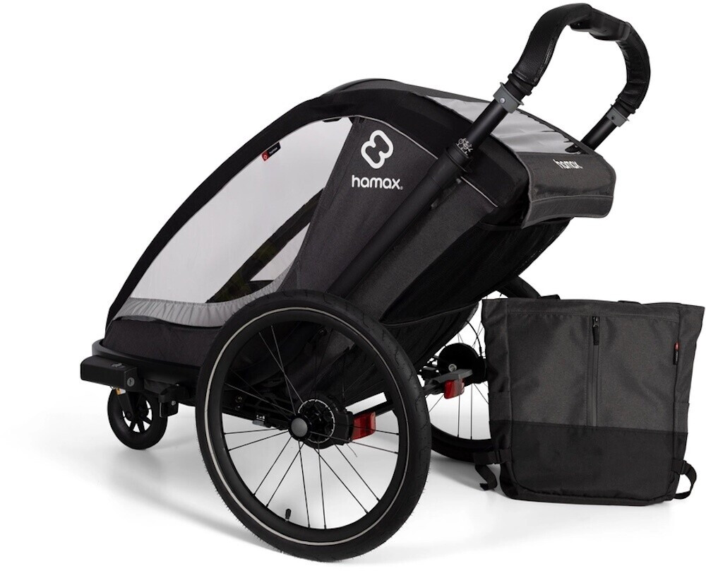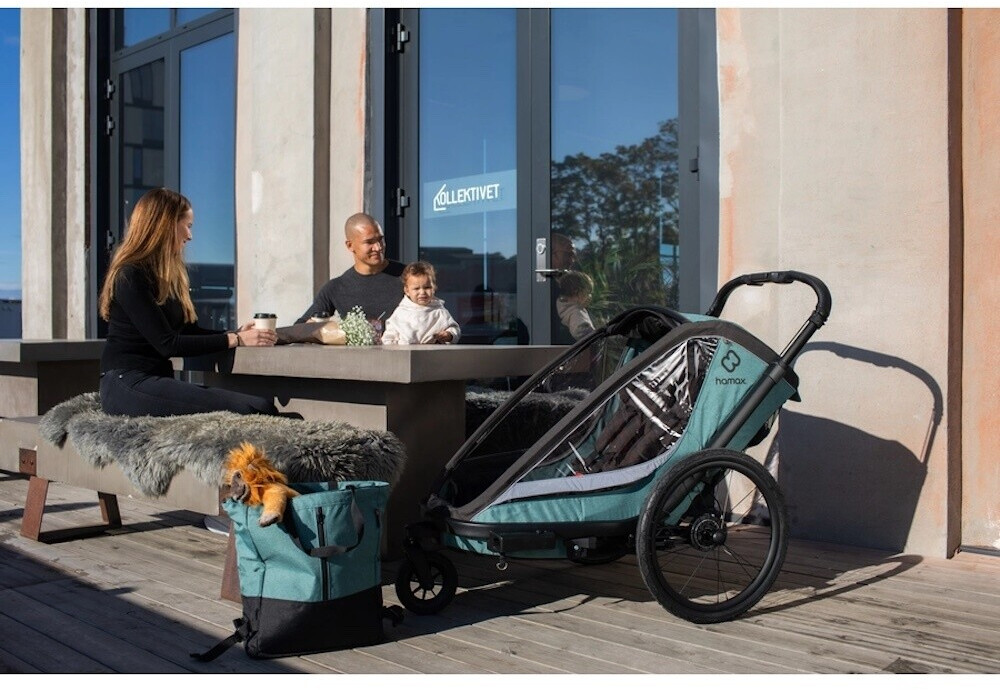 Schließlich ist der Hamax Cocoon nicht nur als Fahrradanhänger, sondern auch als Buggy nutzbar: Er wird inklusive abschließbarer Fahrraddeichsel und schwenkbarem Buggyrad geliefert und verspricht eine angenehme Laufruhe auf jedem Untergrund. Was übrigens den hochwertigen Reifen im Hamax-Design sowie der einstellbaren Federung zu verdanken ist.