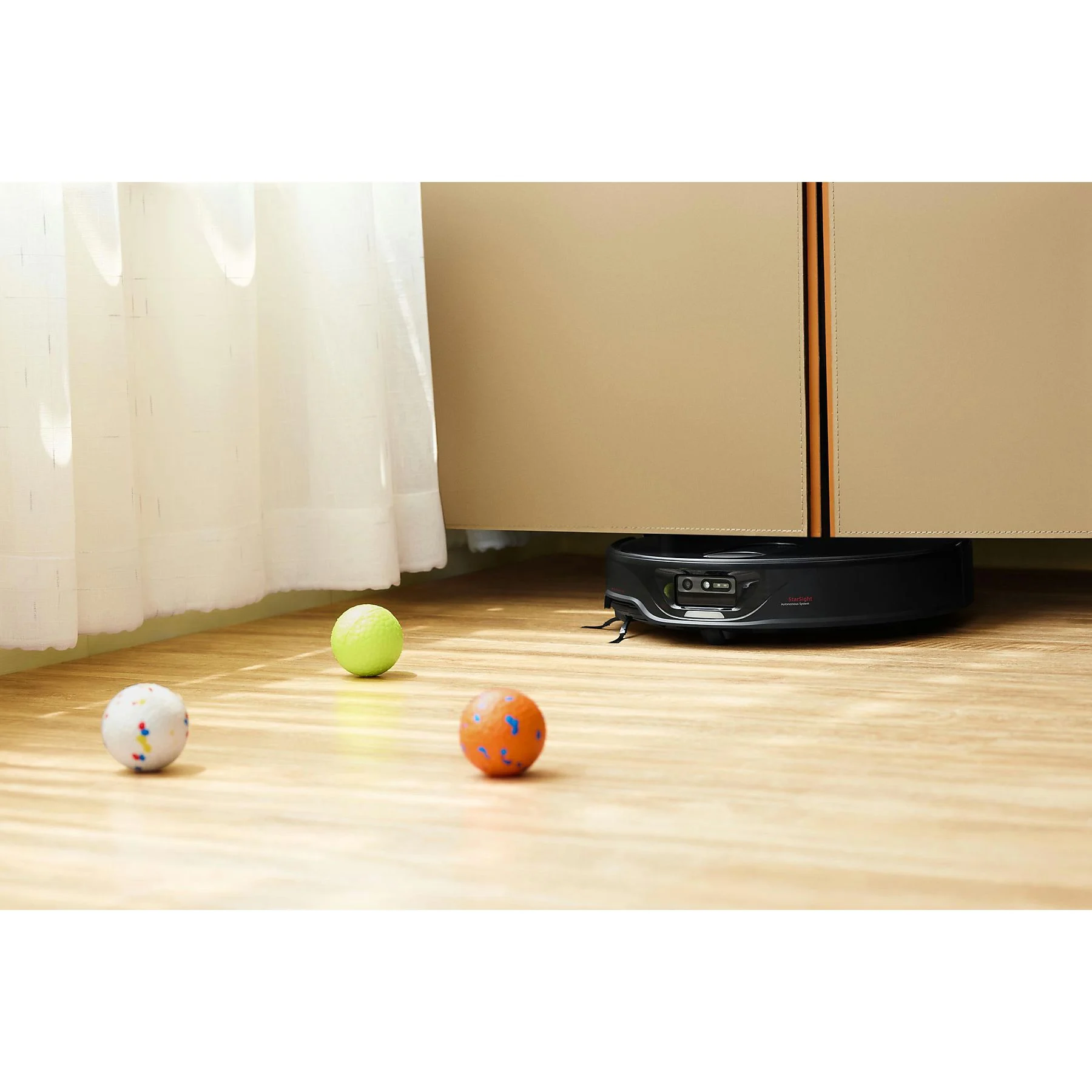 Unser hoch entwickeltes 3D-Time-of-Flight (ToF)-System ist eine Innovation basierend auf dem aktuellsten Stand der Technik. Ein umfassender 3D-Einblicke in die Umgebung ermöglicht eine exakte Navigation mit punktgenauer Präzision und genauer Kartierung – selbst in herausfordernden Bereichen, wie um Hängeschränkeherum der Möbel mit dünnen Beinen.