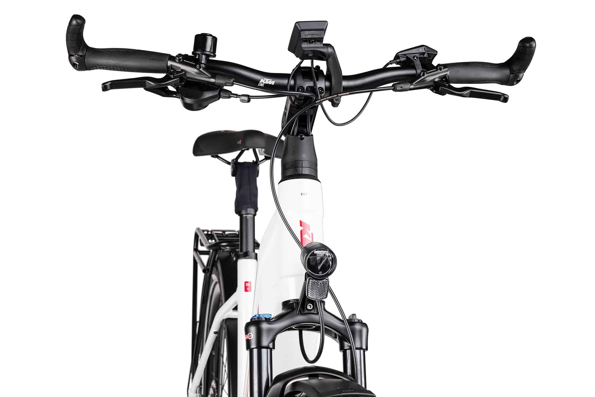 Schalt- und Bremseigenschaften sind entsprechend der guten Ausstattung des Gran Pro Touren-Pedelecs stimmig von KTM ausgewählt. Eine Shimano Cues Schaltung mit 10 Gängen und Shadow+ Schaltwerk, sowie eine Shimano 4-Kolben Scheibenbremse stehen hier für gute Brems- und Schaltleistung auf all deinen Touren. Und dank der Ergon bar-end Griffe und des 80 Lux starken Busch und Müller Scheinwerfers, können diese gerne auch sehr lange dauern.