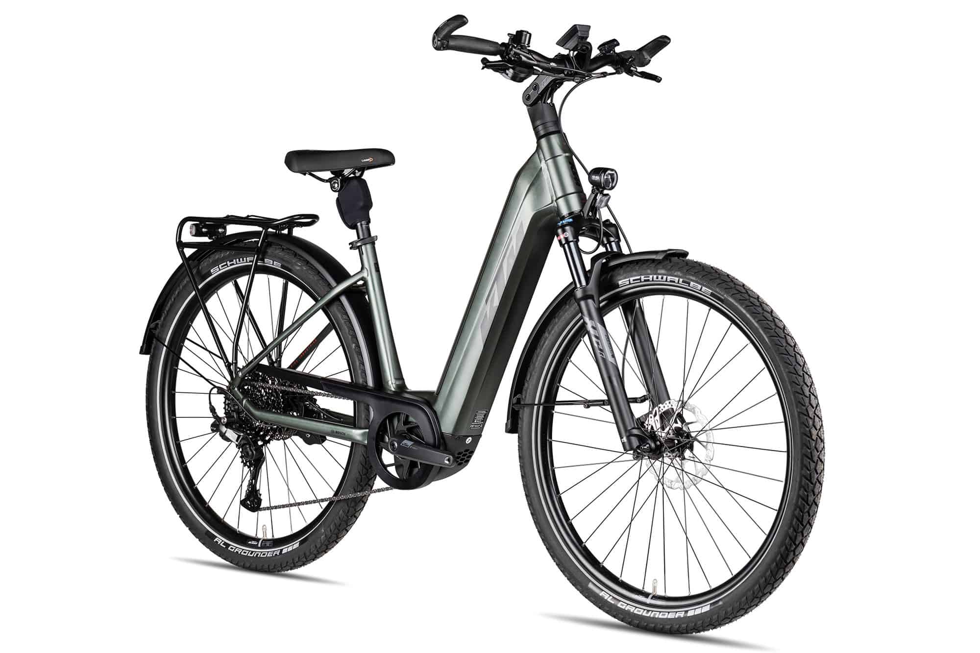 Für die elektrische Tretkraftunterstützung bis 25 km/h kombiniert KTM hier den leistungsstärksten Bosch CX Antrieb mit dem größten 750 Wh Akku. Das smarte Kiox 300 Farbdisplay und das 4 Ampere Ladegerät runden die top Bosch Ausstattung des KTM Gran Pro stimmig ab.