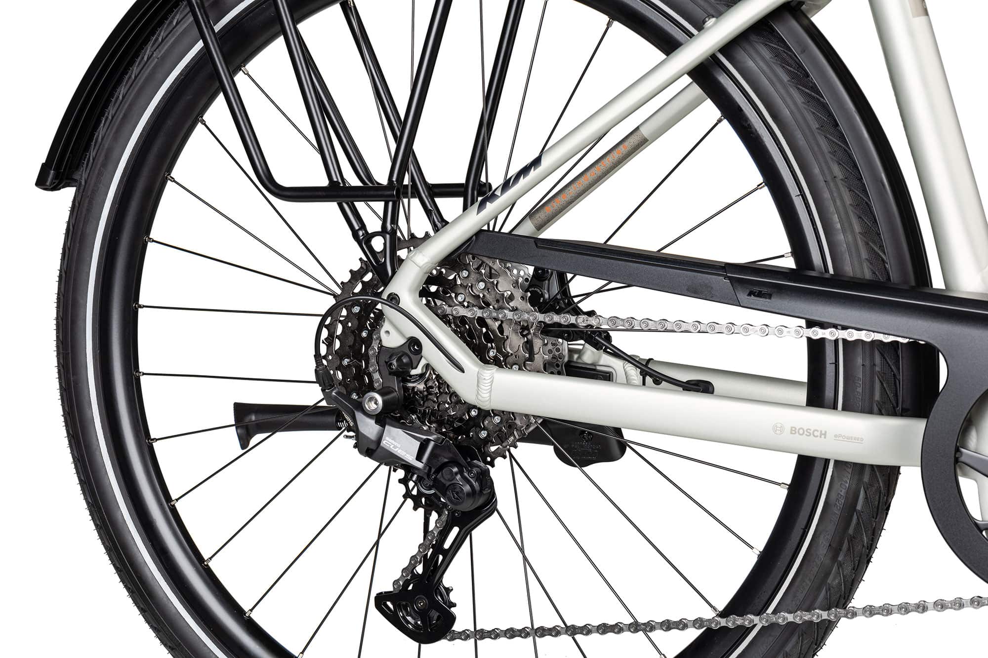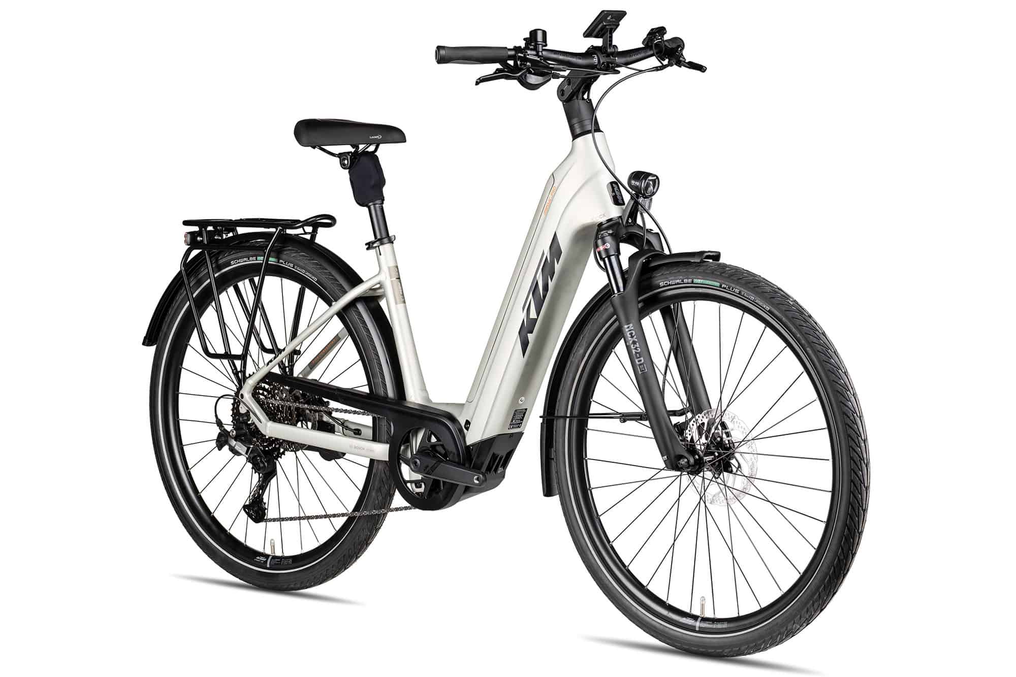 Für die elektrische Tretkraftunterstützung bis 25 km/h kombiniert KTM hier den leistungsstärksten Bosch CX Antrieb mit dem größten 800 Wh Akku. Das smarte Intuvia 100 Display und das 4 Ampere Ladegerät runden die top Bosch Ausstattung des KTM Magic PRO stimmig ab.